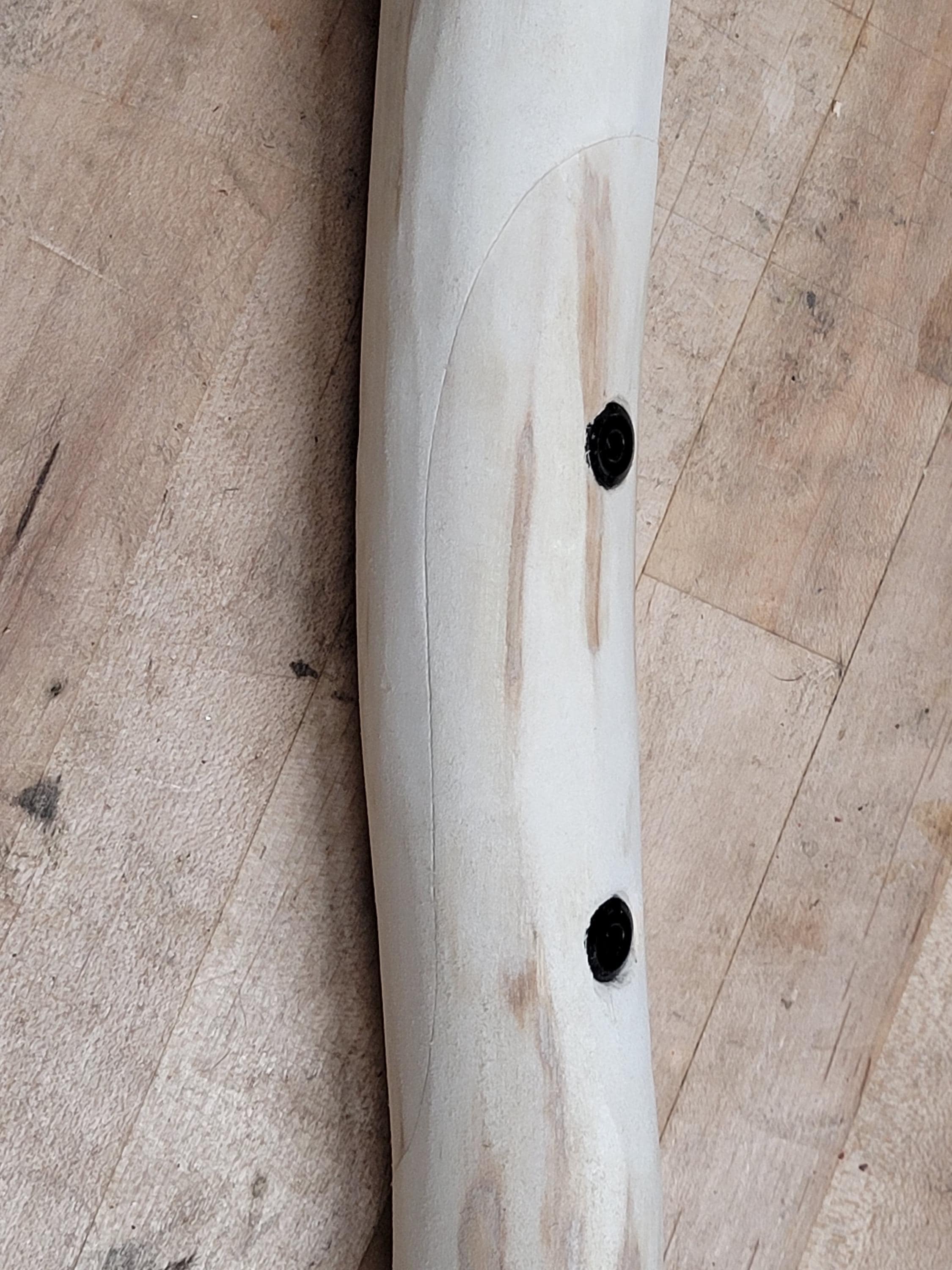 This is a real thick Poplar root staff. It stands 71" tall when assembled and the shaft varies in diameter from 1-1/2" up to 2". It was harvested and the bark was stripped with a pruning knife as well as a drawknife so there are some tooling marks and facets present. This poplar, like most of the overcrowded saplings here, was starting to die. You'll notice there is a dark root area that runs up into the shaft as well as a dark small root. They are structural but eventually it would have spread to the entire tree. These area will probably stain real dak for so nice color contrast. I added a knock-down joint using heavier brown furniture connectors (included) so it can ship for less in a 40" long box. Only the last two pics are updated to show the joint. It weighs 3# and yes, it is a raw material ready to be customized for the next event. (ufws301)