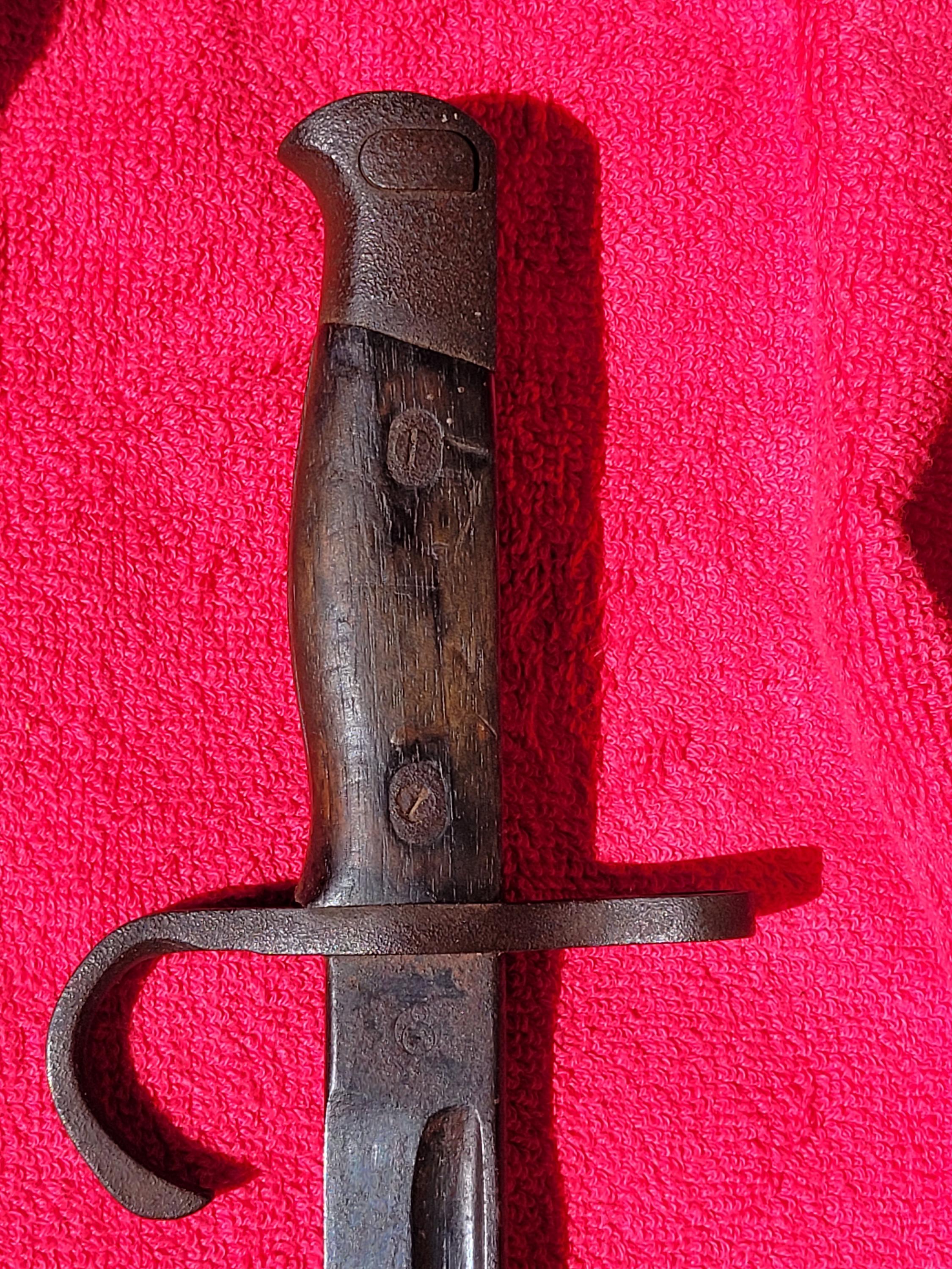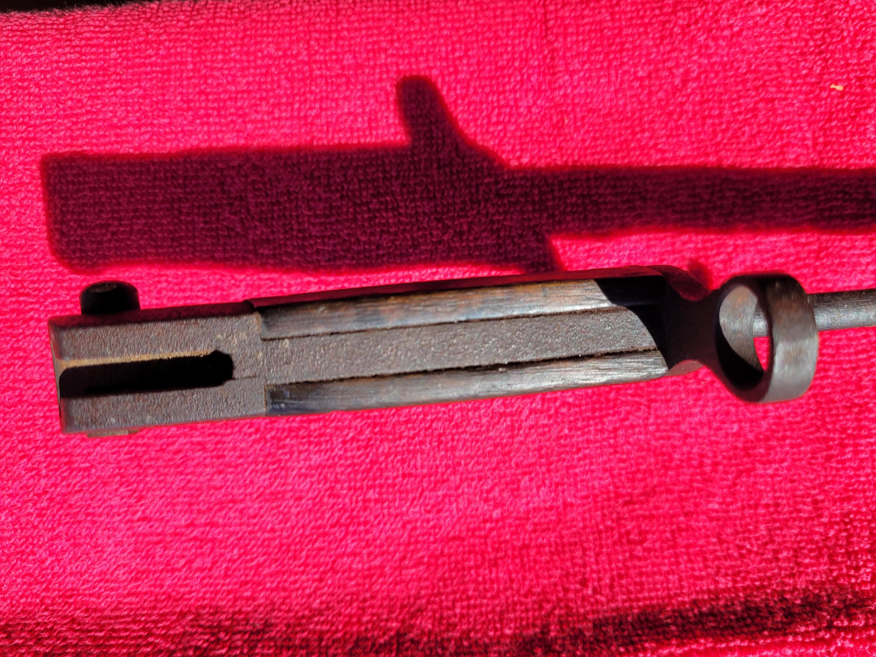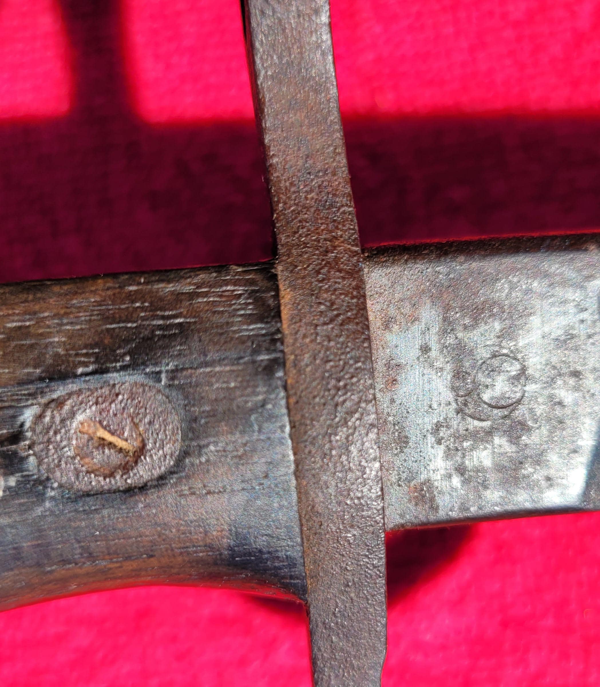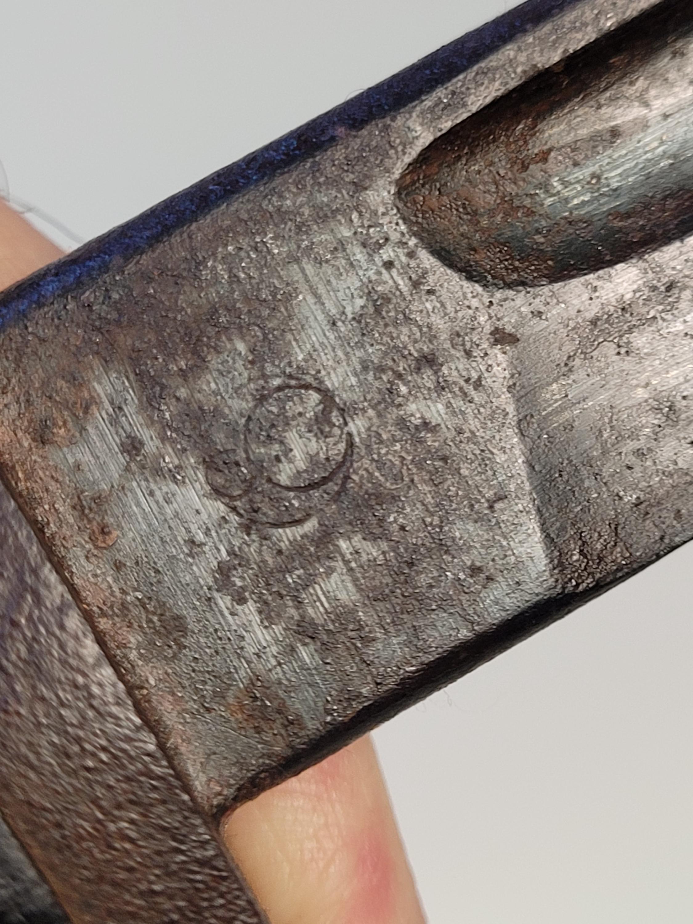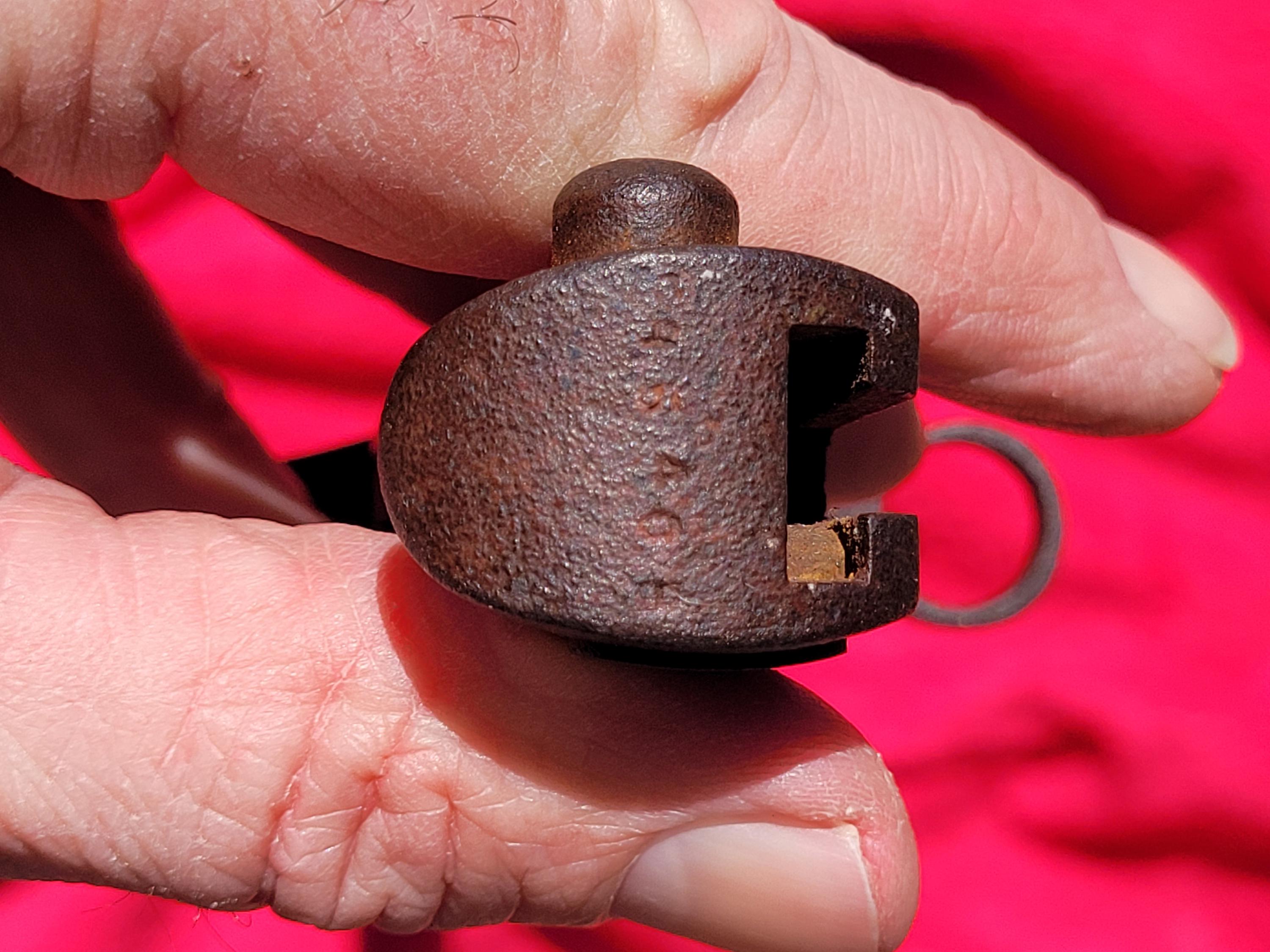 Here is an old survivor. It hasn't been cleaned or polished and it does have some light rust on it, but it is in exception condition. The locking cross-bolt mechanism still slides, the maker's mark is still visible and there is a stamp if you can read it. I applied a light mineral oil/beeswax past just to prevent further rust until someone details it.